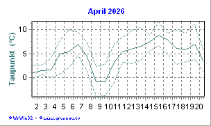 | Zeit | Minimal-Taupunkt | Maximal-Taupunkt | ||